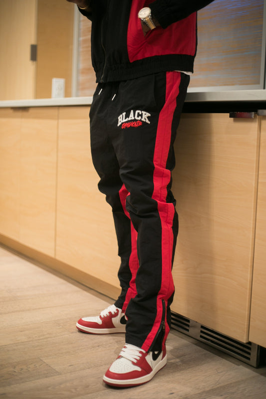 “Black Syndicate” Nylon 3D Embroidered Flare Track Pants